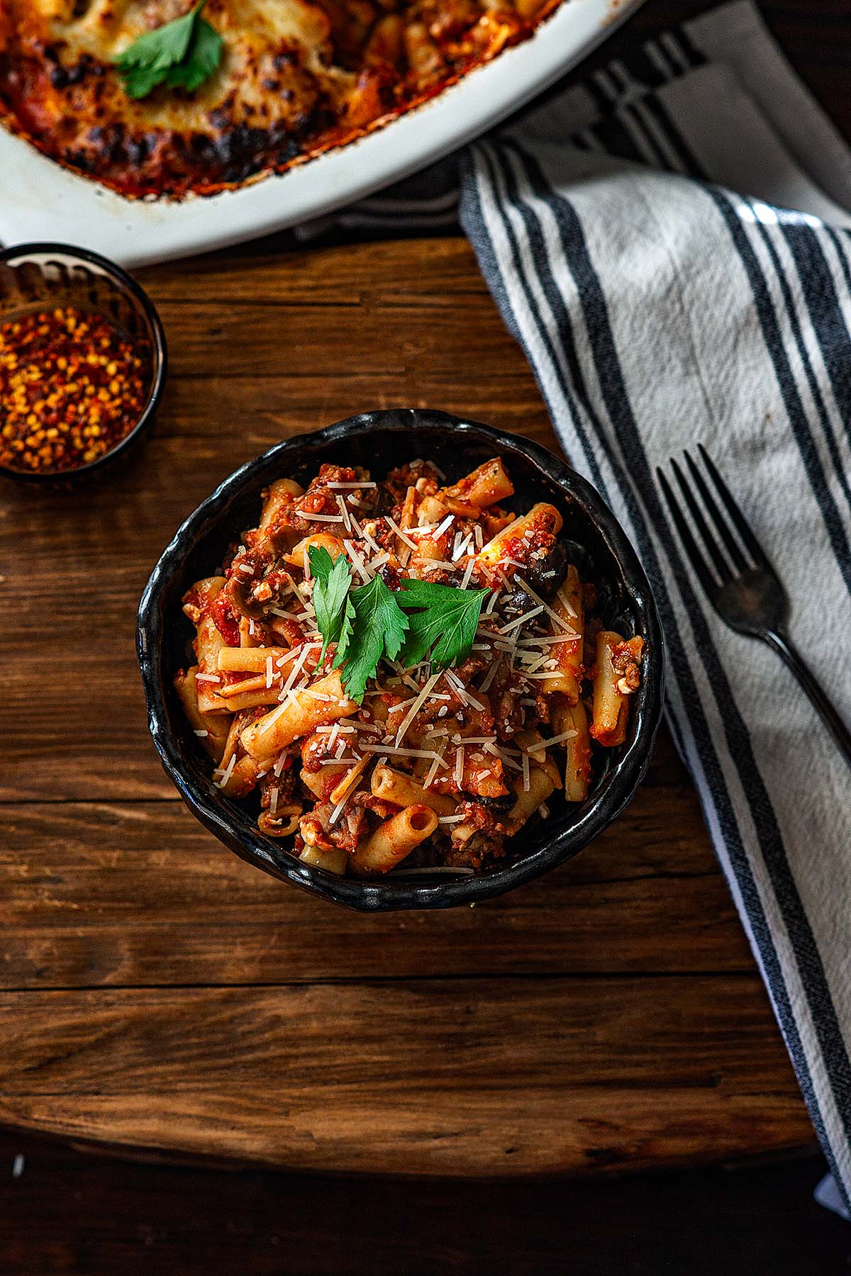 Let It Rest Before Cutting. Allowing the baked ziti to sit for about 10 minutes helps it set and slice cleanly.